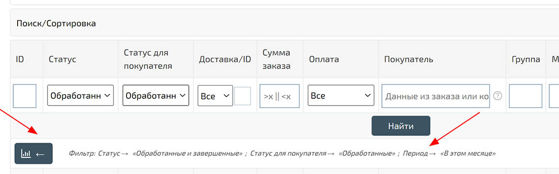 Додані інформаційні поля сортування до адмін-центру. Статистика продажів, товари, категорії, статті та інше. Поле відображається в тому випадку, якщо здійснюється пошук за одним із доступних параметрів.