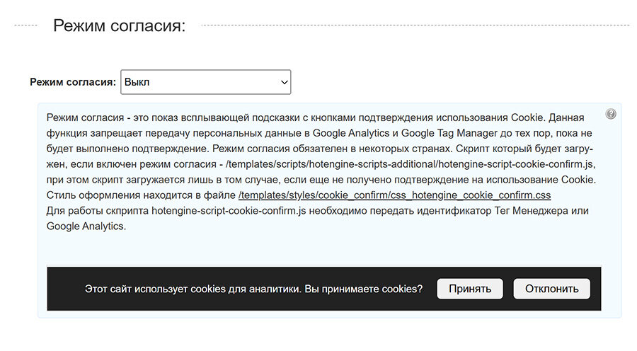 Додана Функція згоди використання Cookie та передачі даних у Google Analytics та Tag Manager.