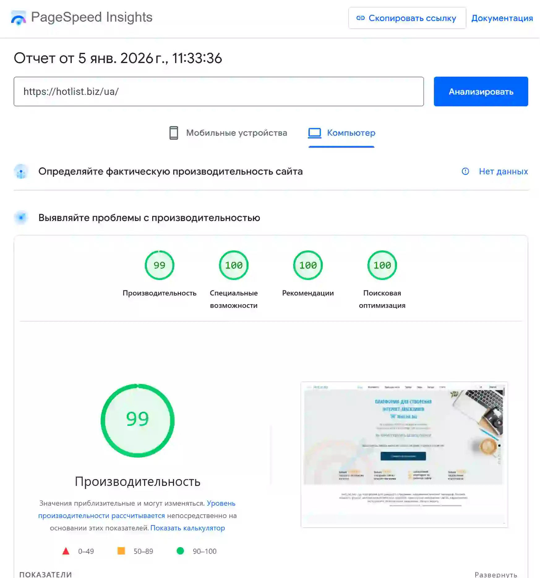 У Hotlist.biz показники Google PageSpeed — це наслідок правильної архітектури, а не просто набір порад.